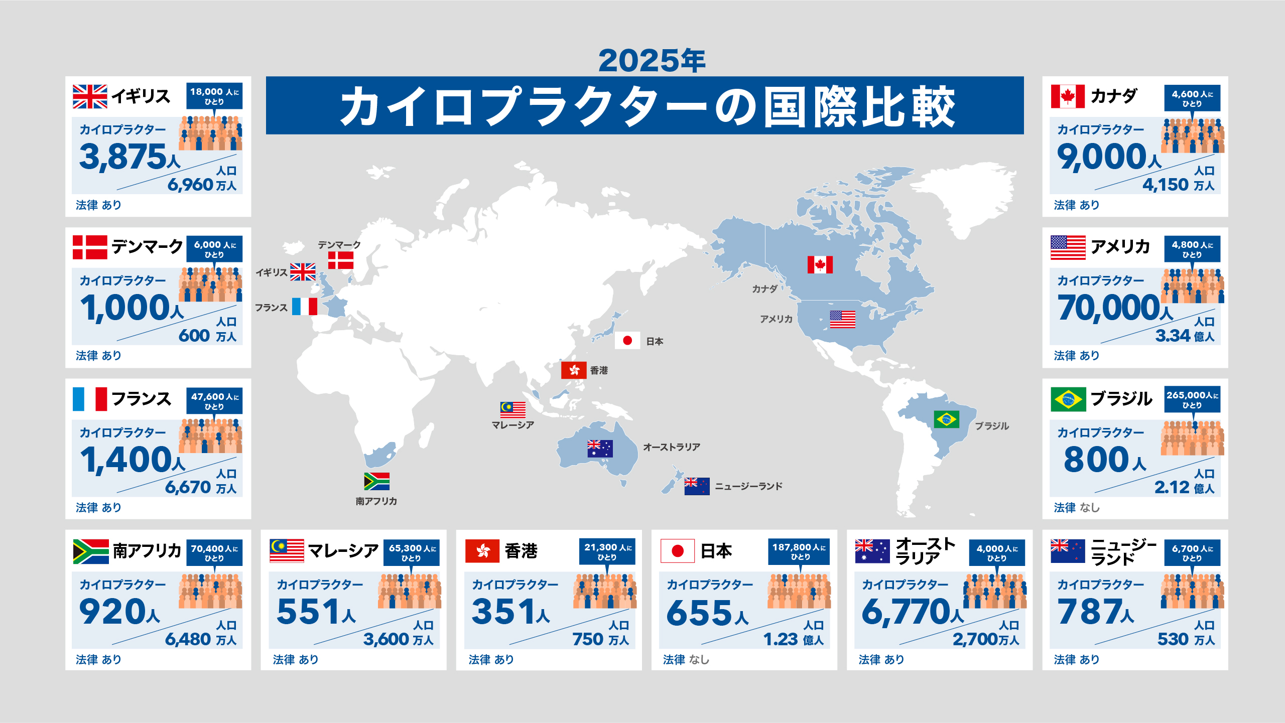 世界各国のカイロプラクターの数